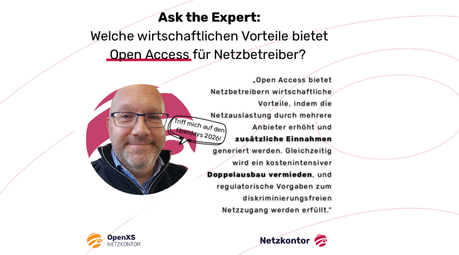 Für unseren nächsten Ask the Expert-Beitrag haben wir mit Karsten Diedrichsen von der OpenXS gesprochen. Karsten ist Senior Sales Consultant, begleitet Open-Access-Projekte und unterstützt Netzbetreiber dabei, tragfähige Kooperationsmodelle zwischen Infrastruktur- und Diensteebene aufzubauen. Durch seine Erfahrung kennt er sowohl die strategischen als auch die operativen Anforderungen, die für eine erfolgreiche Umsetzung entscheidend sind.